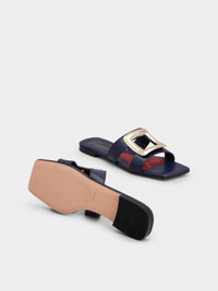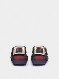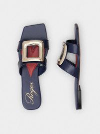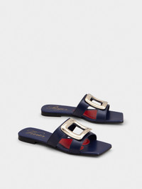The Viv' Choc buckle, with its distinctive rounded shape, adorns these mules in leather with leather outer sole. Characterized by a squared toe, this versatile summer creation is complemented by the emblematic heart-shaped insole. Description & details Calfskin leather Metal buckle Leather insole with heart-shaped insert Leather outer sole Made in Italy Mod: RVW74738070BSSU800