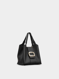 The Viv' Choc Shopping Bag is bound to become a new icon of the Maison. Characterized by the homonymous metal buckle with its distinctive rounded shape, the mini version is here crafted in hammered effect leather. Featuring an adjustable compartment, two fixed handles and a removable shoulder strap, it is a refined partner for the contemporary Vivier woman. Description & details Made in Italy Item crafted in leather Metal buckle Adjustable compartment with strap and snaps Flap and magnet closure Internal pocket Bottom feet Dimensions: 12.2 x 7.1 x 4.5 ins, fixed handles, removable shoulder strap Maintenance and care cards included Branded dustbag Mod: RBWAOGA0100QV7B999