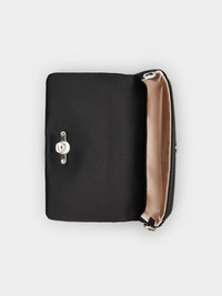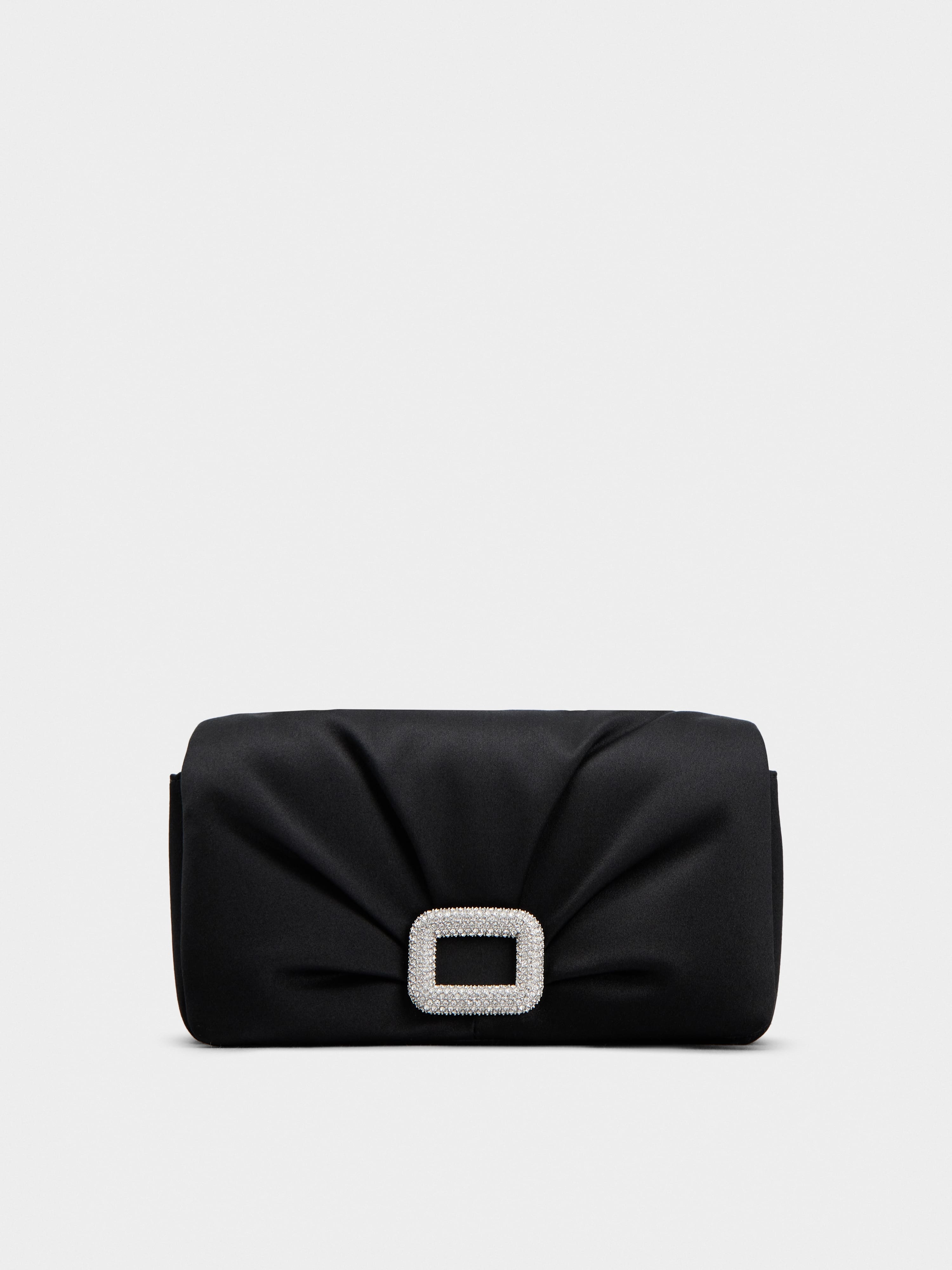 Phone holder in satin with elegant drape and iconic crystal rounded buckle. Closed with flap and magnetic button, this sophisticated accessory comes with a removable shoulder strap in leather. Description & details Made in Italy Item crafted in satin Crystal buckle Flap and magnetic button closure Satin interior Internal pocket Dimensions: 7.1 x 3.7 x 2.8 ins, removable shoulder strap in leather Maintenance and care cards included Mod: RAWAWHO2302MHAB999