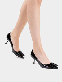 In the Viv' In The City pumps, the iconic buckle of the Maison is covered in a tone-on-tone with a contemporary taste. This model with timeless line is handcrafted in patent leather and features a slim lacquered heel. FEATURES - Patent leather - Patent leather covered buckle - Lacquered heel 2.6 ins - Leather outer sole RVW61830690D1PB999
