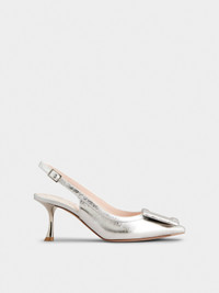 Modern and versatile, the Viv' in the City is characterized by a covered buckle and a stiletto heel. Crafted in metallic leather, these slingback pumps add the final touch to a metropolitan woman's allure. FEATURES - Ovine leather - Covered buckle - Heel strap - Leather insole - Leather outer sole - Stiletto heel - Heel height 2.6 ins - Made in Italy RVW61837770T0HB200
