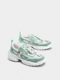 The Viv' on the Run are sneakers with a serrated outer sole, adorned by a removable crystal buckle. This comfortable style, crafted in leather and mesh, adds a Vivier touch to a decontracte look. FEATURES - Leather and suede - Fabric inserts - Mirror-effect fabric detailing - Side elastic bands - Crystal buckle - RV logo embossed on the tongue - Rubber outer sole - Made in Italy - Additional laces included RVW75640890UZG7E14
