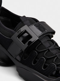The Viv' on the Run are sneakers with a serrated outer sole, here featuring a trekky upper. Crafted in mesh and patent leather, they are adorned by a lacquered buckle. A comfortable style that adds a Vivier touch to a decontracte look. Description & details Fabric and patent calfskin leather Strap with lacquered buckle Rubber outer sole Mod: RVW75642670TU5B999