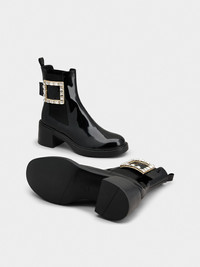 Viv' Rangers Strass Buckle Chelsea Ankle Boots in Leather
