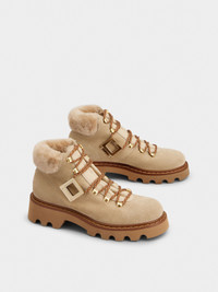 The Viv' Rangers Truck collection reinvents urban standards with a bold yet refined twist. With their thick lugged outer sole and iconic buckle, these booties in suede add a strong touch to any outfit. Description & details Calfskin suede Sheepskin inserts Smooth leather detailing Metal side buckle Leather welt Sheepskin lining and insole Rubber outer sole Made in Italy Mod: RVW78443460USL5QQH