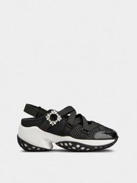 Designed by Gherardo Felloni, the iconic Viv' Run is here reinterpreted in a ballerina version. Crafted in mesh with patent leather toe and grosgrain straps, they are the Vivier touch to a decontracte look. FEATURES - Mesh fabric - Patent leather and grosgrain inserts - Crystal buckle - Heel strap with velcro - Rubber outer sole - Height 3 ins approx - Made in Italy RVW50643980V4F0XCR