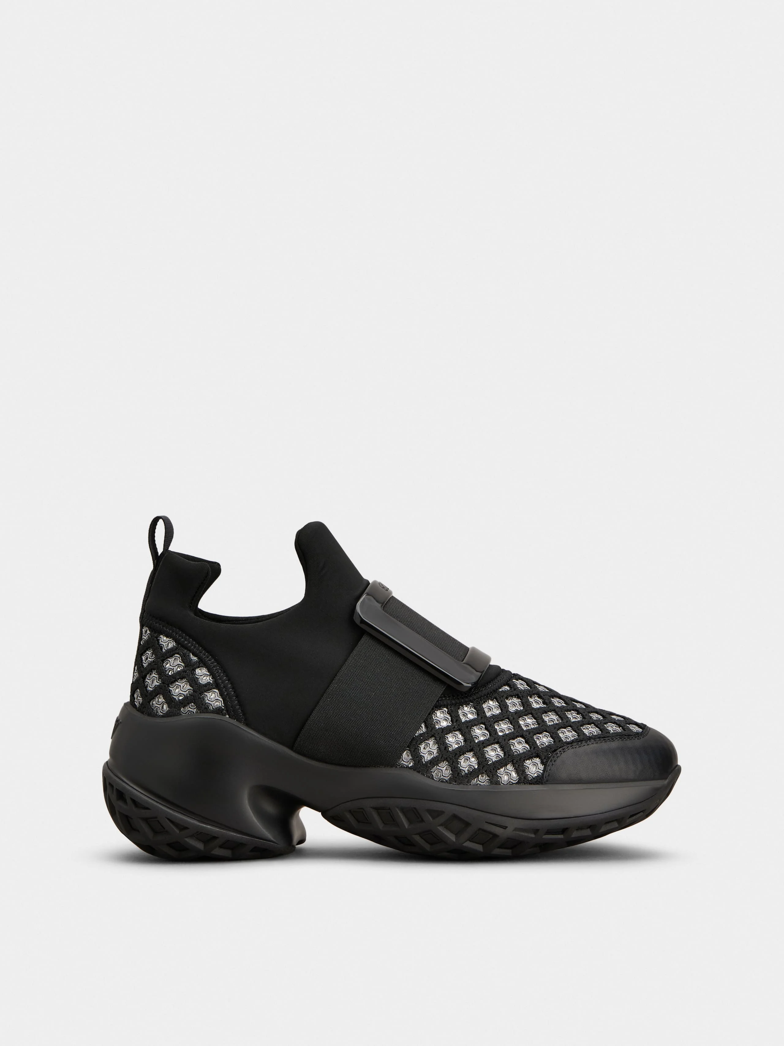 Designed by Gherardo Felloni, the Viv' Run combines two symbols of the Maison: the Belle Vivier buckle and the curves of the Choc heel. These comfortable slip-on sneakers are crafted in embroidered mesh, with scuba effect inserts and nappa leather toe. The Vivier touch to a decontracte look. Description & details Mesh fabric Scuba effect fabric inserts Nappa leather detailing Front band Lacquered buckle Rubber outer sole Height 3 ins approx Made in Italy Mod: RVW50643990V4Z0TXT