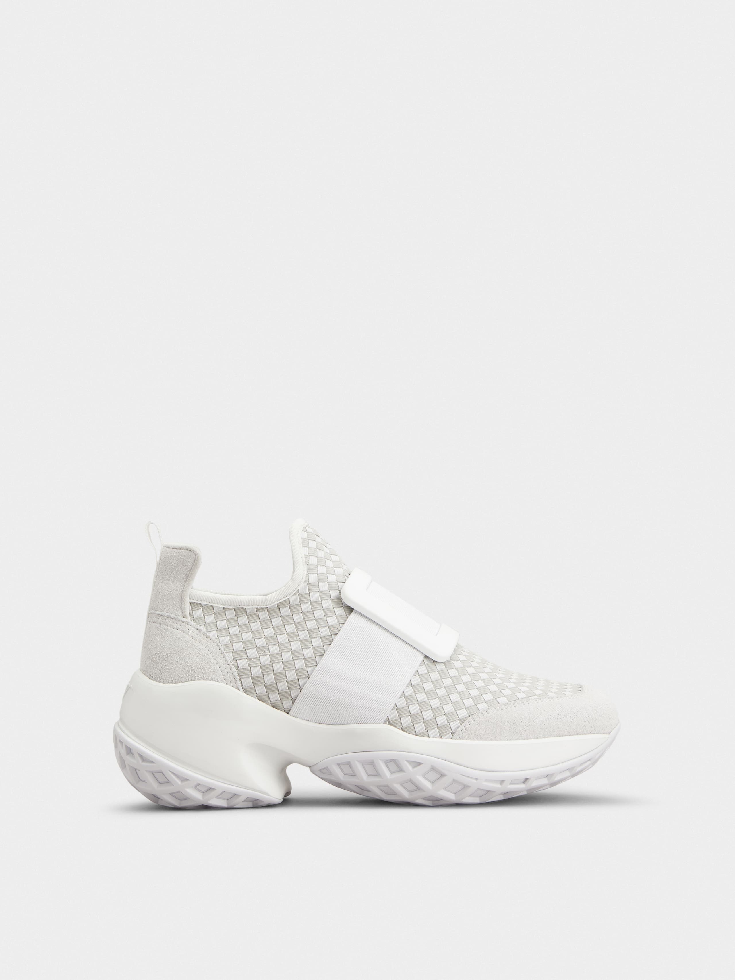 Designed by Gherardo Felloni, the Viv' Run combines two symbols of the Maison: the Belle Vivier buckle and the curves of the Choc heel. These comfortable slip-on sneakers are composed by finely braided elastics, with suede inserts. The Vivier touch to a decontracte look. Description & details Stretch fabric Suede inserts Front band Rubber buckle Rubber outer sole Height 3 ins approx Made in Italy Mod: RVW50642870UNN0UUR