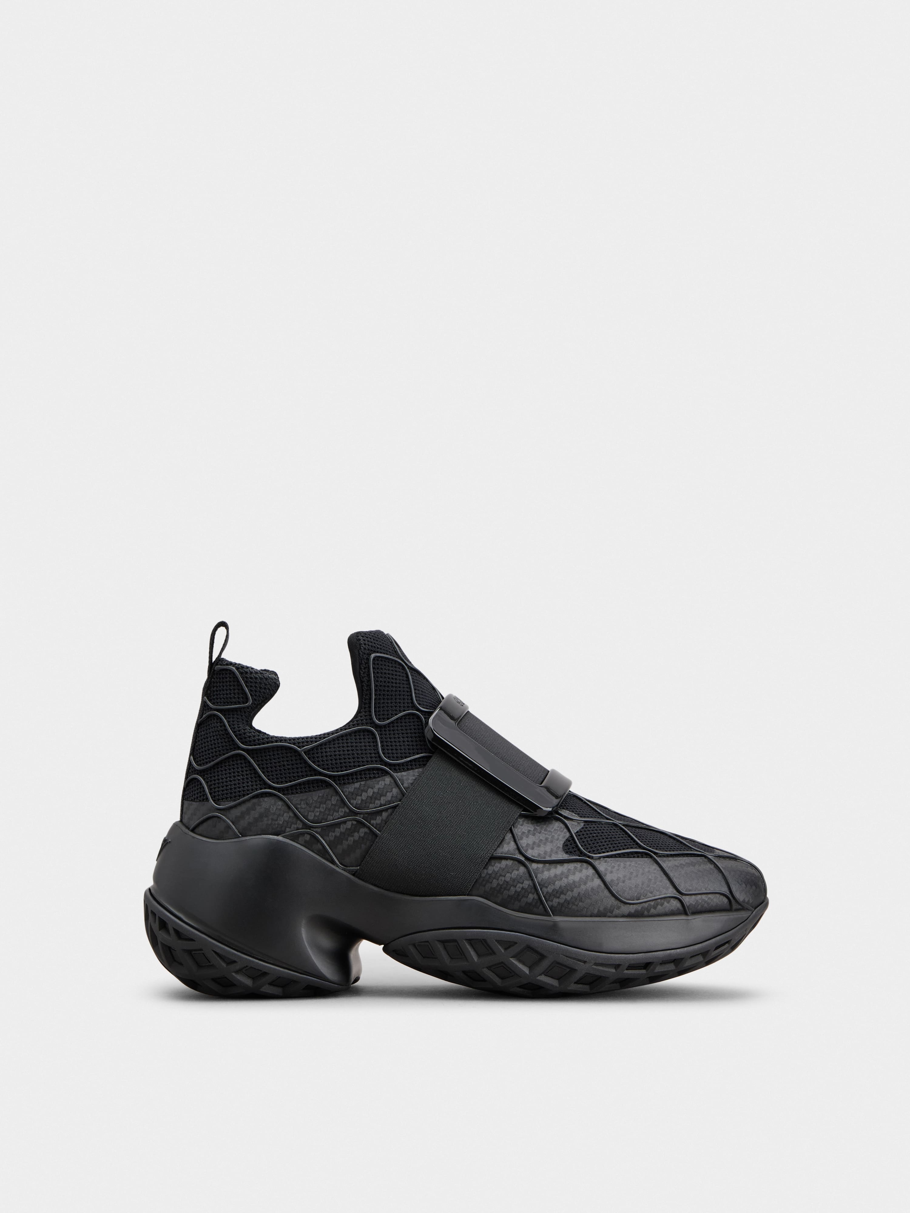 Crafted in technical fabric with rubber net pattern, the Viv' Run Lacquered Buckle sneakers are a creative combination of fashion luxury and sporty performance. The iconic lacquered buckle embellishes this urban must-have. Description & details Made in Italy Technical fabric upper Embossed net pattern Branded lacquered buckle Front elastic band Rubber outsole max 3 ins Maintenance and care cards included Branded dustbag Mod: RVW50637970T6OB999