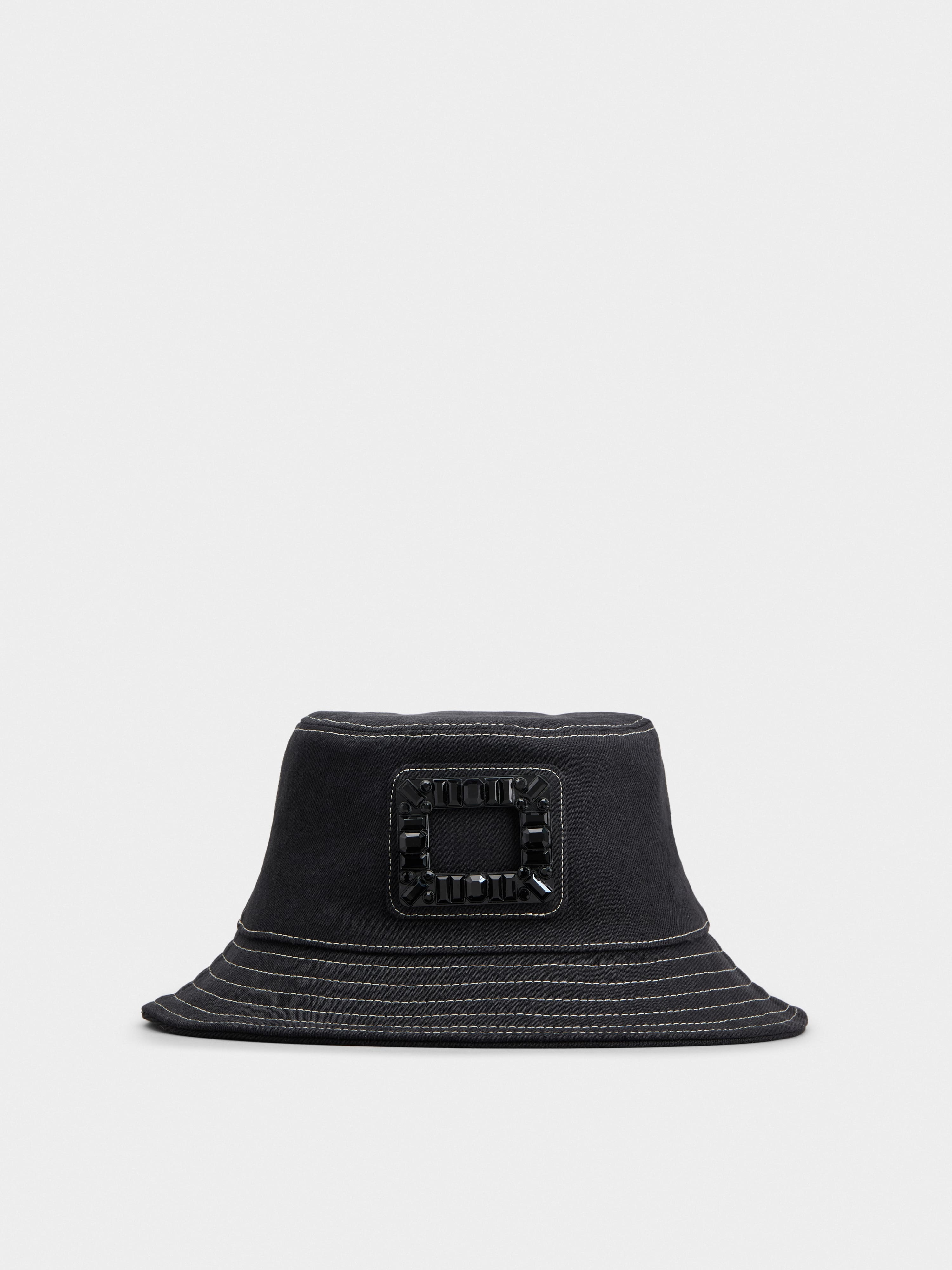 Crafted in denim, this bucket hat is adorned by the iconic crystal buckle. An accessory that complements the urban look with an elegant Vivier touch. Description & details Cotton Crystal buckle Cotton lining Roger Vivier logo on the inside Made in Italy Mod: RQWH0083100T0XB999