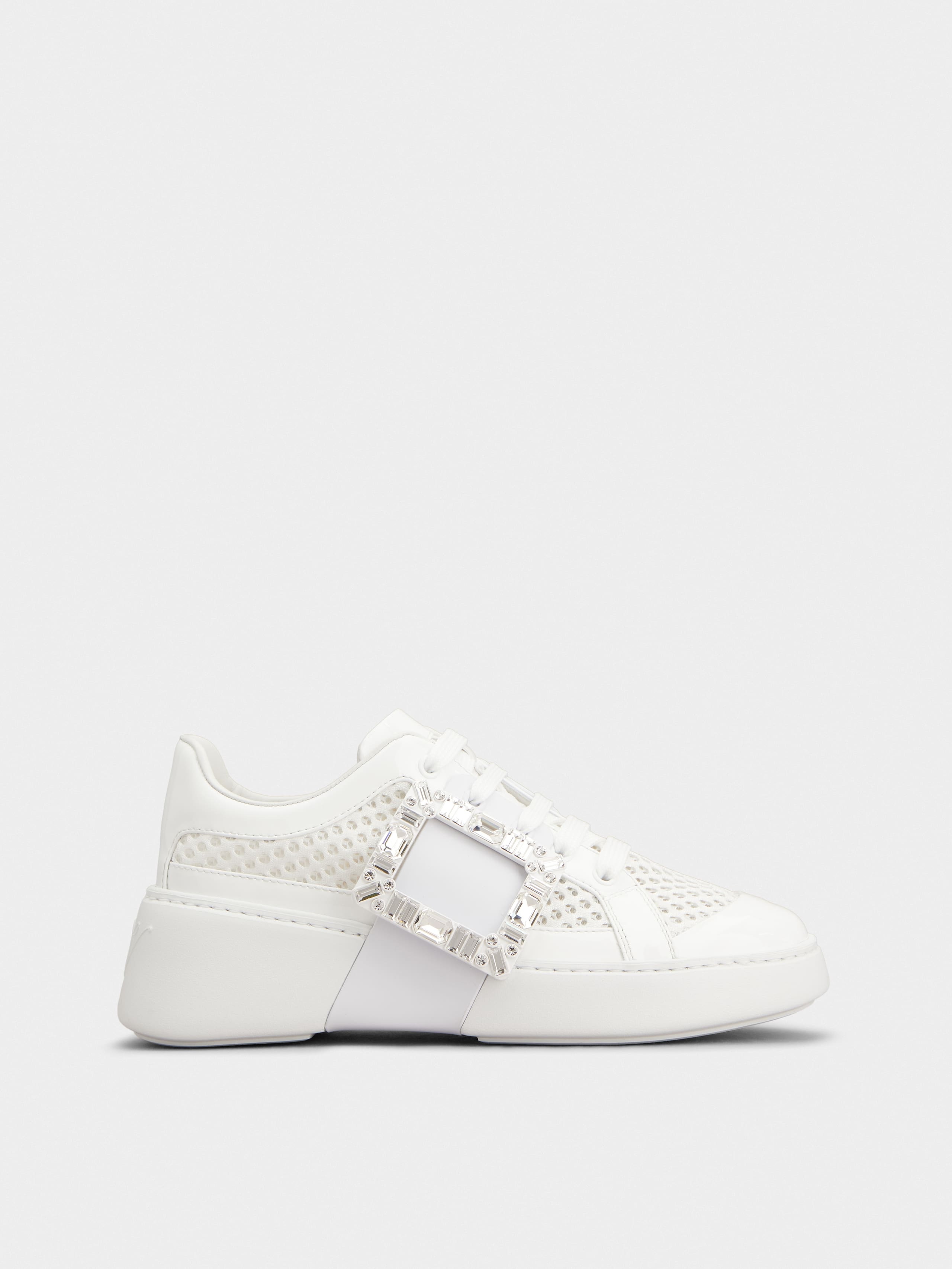 Casual and contemporary, the Viv' Skate sneakers are characterized by a rubber outer sole. They are adorned by the iconic crystal side buckle. Crafted in mesh fabric and patent leather, they complement your urban look with an elegant Vivier touch. Description & details Mesh fabric Patent calfskin leather inserts Crystal buckle Leather insole Rubber outer sole Made in Italy Mod: RVW54234850R77B001