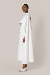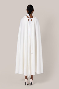 Architectural yet feminine, the ELINA dress in ivory is constructed from luxurious crepe and features an elegant cape that falls effortlessly towards the floor for a stunning sculptural mid length bridal silhouette. Model Wears: UK Size 8 Details & Care Main Colour: Ivory Product Composition: Crepe Product Care: Specialist Dry Clean