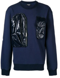 Calvin Klein 205W39NYC Pocket Knit Sweatshirt. Only worn a few times. Shipped with USPS Priority Mail. The Calvin Klein 205W39NYC AW18 collection was imbued with ideas and strange hybrids, offering styles with juxtaposing elements, often within same silhouette. Made from cotton, this navy blue hoodie has a relaxed fit, with long sleeves and a round neck and it features contrasting navy nylon zip-up patches on the front.