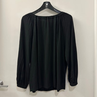 Rare $1600 Value Loro Piana crepe jersey lends a breezy feel to this blouse designed with loose-fitting sleeves and a gathered neck. - Retail Price: $1600 - Size: 14US | 48IT - Split neck with ties - Long sleeves - Made in Italy - 100% Authentic - Final sale, no return nor refund - Send me an offer & PM me if you have any questions - Don't forget to check other items for sale