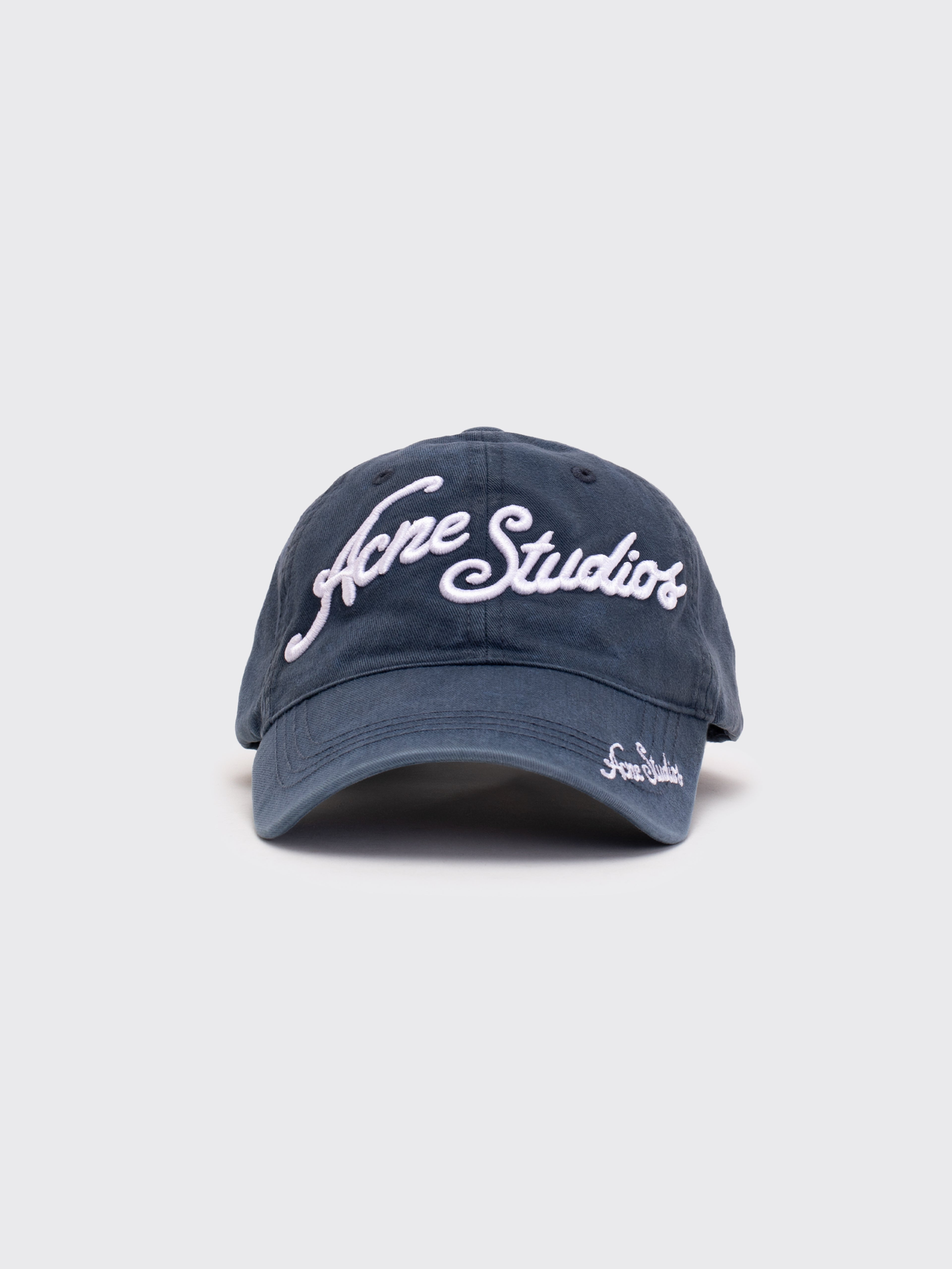 Color: Deep Blue. Baseball cap features a seasonal Acne Studios 3-D embroidered logo, crafted from washed twill cotton and detailed with an adjustable D-ring.