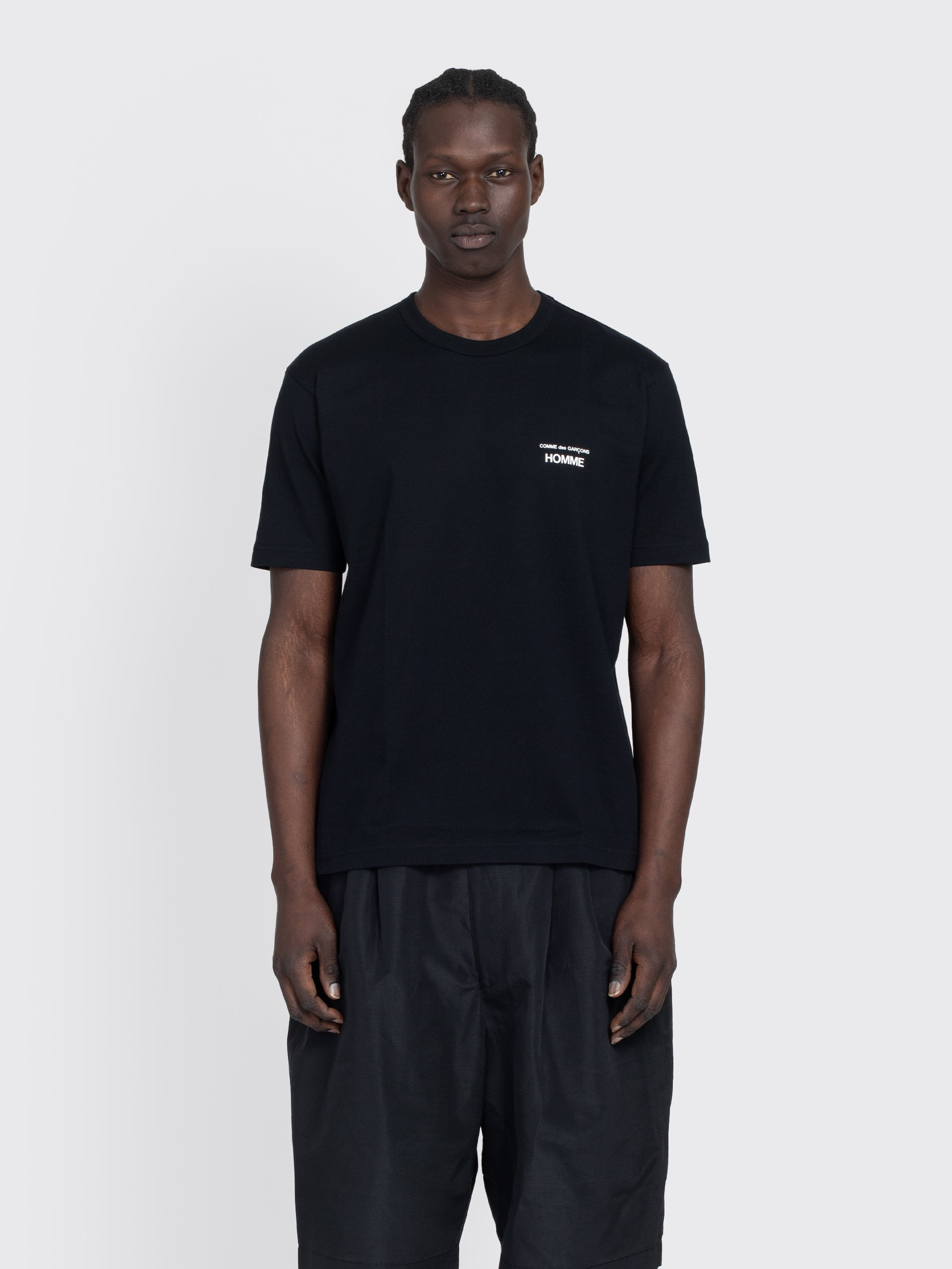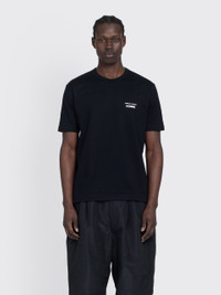 Color: Black/White. Cotton jersey T-shirt. Rib-knit crewneck. Logo printed at chest. 100% Cotton. Made in Japan. Model is 6'3 and wears size M.