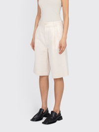 Color: Cream White. Relaxed fit shorts in a linen and organic cotton blend, tailored with a mid-rise waist and knee length. Made in Portugal 51% Linen, 49% Cotton (organic)