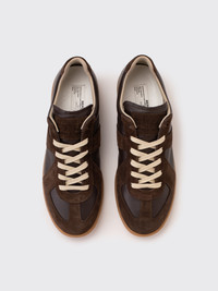 Color: Brown. The Replica sneakers in nappa leather and suede with a honey sole. The Maison's iconic Replica sneakers are inspired by Austrian sports shoes from the seventies. Details on the Replica pairs are continually reworked in line with the season's inspirations. - Upper: 100% calf leather - Contrast: 100% calf leather - Lining: 100% cotton - Sole: 100% rubber - Lace-up sneakers in nappa leather and crust leather - Contrasting sole - Maison Margiela logo label on the tab - White stitching at the back - Internal Replica label - Internal elastic - All-over Maison Margiela logo insole - Clean with a gentle leather cleanser Made in Italy
