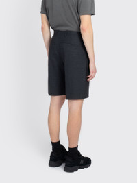 Color: Charcoal. Produced in an Portuguese wool fabric, the mens Borrowed Shorts has a relaxed fit and features front pleats, a YKK zip fly and a hidden hook and eye waist closure. · Portuguese suiting fabric · 100% Wool · Pleated front · Two side pockets · Two back welt pockets · Horn buttons · YKK zip fly · Covered hook-and-eye waistband fastening · Relaxed fit Model is 6'4 and a 32 waist and wears size 48.