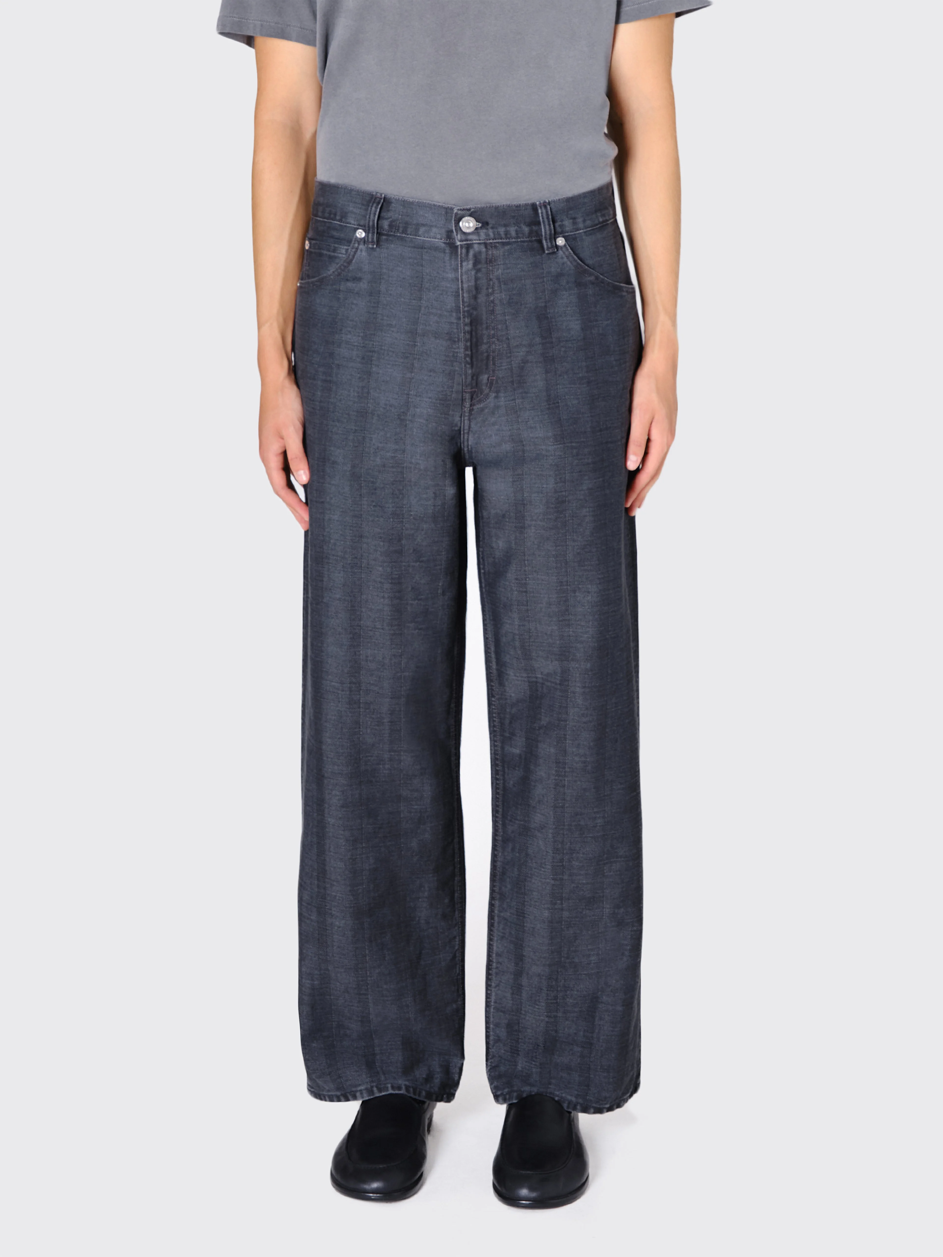 Color: Black. Black Coated Herringbone · Italian denim · 100% Cotton · Pigment print layer · Subtle stripe · Wide loose cut · High waist · Five pockets · Steel rivets · Embossed OUR LEGACY patch · YKK zip fly