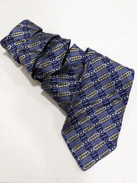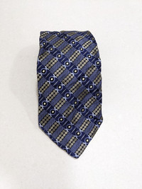 Elevate your style with this Robert Talbott Studio designer necktie. Made from 100% silk and featuring a geometric pattern in blue and silver, this tie is perfect for any occasion. Its classic width and length make it a versatile addition to any man's wardrobe. Crafted in the United States, this tie is a true expression of American design and quality. Its attached by a classic tie knot, making it easy to wear and perfect for any formal event. Whether dressing up for a wedding or adding a touch of sophistication to your everyday attire, this Robert Talbott Studio tie is sure to impress.