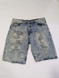 Size on tag 44 Waist 44 inches Length 26 inches Good condition. Distressed pattern but no holes. There is patch inside the jeans at the distressed area. Shipping worldwide via standard shipping.