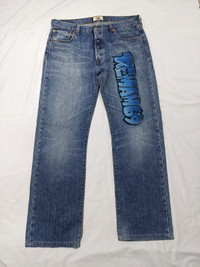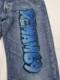Vintage 90s Levis 501 Custom Graffiti Blue Denim Jeans
