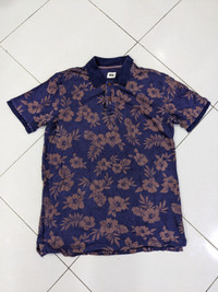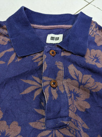 Vintage Uniqlo Hawaii Floral Blue Polo Shirt Cotton Mens