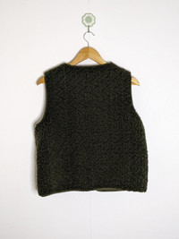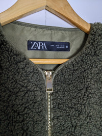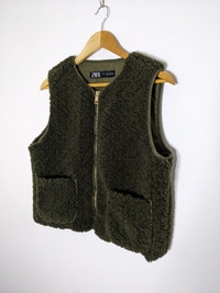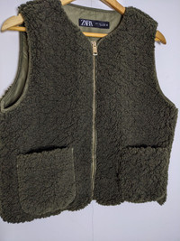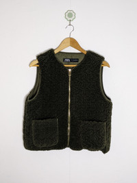 Zara Women's Deep Pile Fleece Vest Gilet Army Green