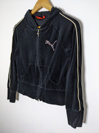 PUMA Jacket Women Black Velvet Diamond Logo Outdoors