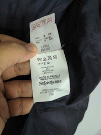 Please check the measurement & picture before buy / make offer Brand: Yves Saint Lauren Condition : Got stains and damage at fabric. See pics Size on tag : Na. Fit like XS Measurement :- Chest (Armpit to armpit): 17.5 inches Length: 38.5 inches Sleeve: 21 inches SHIPPING 1) We ship to worldwide with a tracking number. - All item will be ship from malaysia and will be ship by Singapore post or Malaysia post services - All items will be shipped out within 2-3 business days (handling time) after payment received. - Usually,it takes about 10 - 24 business days for delivery for all International order. 2) Add 5.00 USD for speedy delivery via DHL Express Service.It will take 4-7 Working days to deliver. Much safer!! (PLEASE LEAVE YOUR CONTACT NUMBER AFTER PURCHASED. THE CONTACT NUMBER WILL BE USED SOLELY FOR SHIPPING PURPOSE. SO THAT THE COURIER CAN CONTACT YOU IF ANY PROBLEM ON THE SHIPMENT) Remark: