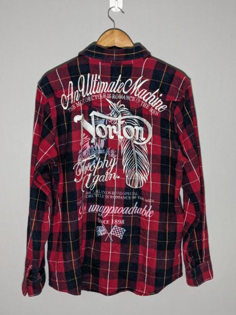 Racing - Norton Motorcycle Pearl Snap Button Embroidery Flannel Shirt