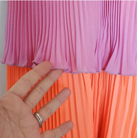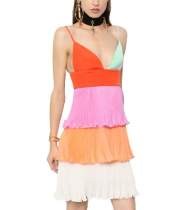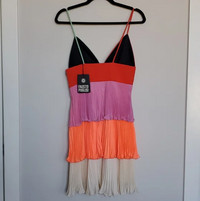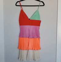 How cool is this you guys? Here we have a gorgeous summer dress created by one of Italy's top designers Fausto Puglisi! This fit and flare dress is made with funnest of colours. We have lime green, orange, pink, red, and then ivory to tie it all together. Sherbet anyone? Haha I'm so funny lol Anyhow this dress originally retailed for over $2800 CAD! And you can get this for a fraction of the price 😏 This dress features: Three tiers of flowy pleated layers Hidden zipper Slip underneith Fit and flare style, designed to fit snug and the flare out at the waist. Spaghetti straps V neck 100% At the top and inside Chest: 14" Waist: 13" with stretch Length: 13" Listed as a size 40 so typically a small, but runs a bit smaller