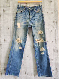 Distressed Denim Wrangler Blue Jeans This Is Not A New Item! It's Used, Pre-Loved And Some Got Marks Wear And Tear PLEASE READ CAREFULLY AND UNDERSTAND WHAT ARE YOU BUY! Material : Cotton Jeans Color : Blue / As Pictures (Colour Maybe Slightly Different From Pictures Due To Lighting & Camera) Store Code : SJ23 Made In : Unsure Tag : Wrangler Size On Tag : Unknown Condition : Used, Manual Size : Waist - 28 inch, Inseam - 30 inch, Outseam - 40 inch, *All Measurements Measured With The Garment Lying On Flat Surface* ALL SALES ARE FINAL NO CANCEL, NO RETURN, NO FUSSY BUYER, POSTAGE BY DHL EXPRESS WITHIN 5 - 7 WORKING DAYS WORLDWIDE #PreLoved #HypeBeast #Grails #Fashiongram #ChromeHearts #Denim #Jeans #RafSimons #Undercoverism #JunyaWatanabe