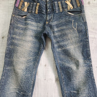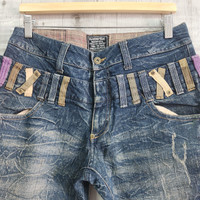 Japanese Brand - Alphanumeric Japanese Denim Acid Wash Double Waist Jeans