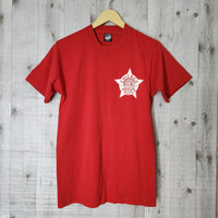 Very Rare Vintage Chicago Police 1980s TShirt Single Stitches Color : Red (Colour Maybe Slightly Different From Pictures Due To Lighting & Camera) Store Code : TS10 Made In : USA Tag : Screen Stars USA Size On Tag : M (recommended S) Condition : Used, No Pinholes, Manual Size : Armpit To Armpit 18 inch, Length 27 inch, DO PLEASE READ CAREFULLY AND UNDERSTAND WHAT ARE YOU BUY! ALL SALES ARE FINAL NO RETURN, NO CANCEL, NO FUSSY BUYER POSTAGE BY DHL EXPRESS WITHIN 5 - 7 WORKING DAYS WORLDWIDE
