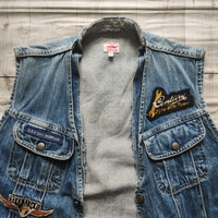 Lee Trevor Union Made Biker Denim Vest Hydra Glide Thunderbird NinjaSeller Online Store でお買い物していただき、誠にありがとうございます PLEASE READ CAREFULLY AND UNDERSTAND WHAT ARE YOU BUY! Tag : Lee X Union Made Size On Tag : L Color : Blue Denim - As Pictures (Colour Maybe Slightly Different From Pictures Due To Lighting & Camera) Material : Denim Mixed Store Code : BJ22 Made In : Italy Condition : Used, Manual Measurements : Lying Flat Chest 21 inch, Length 24 inch, PLEASE DO READ CAREFULLY AND UNDERSTAND WHAT ARE YOU BUY TO AVOID ANY PROBLEMS ALL SALES ARE FINAL!!! NO RETURN! NO CANCEL! NO FUSSY BUYER! FAST PROCESS POSTAGE BY INTERNATIONAL POSTAGE DHL EXPRESS OR FEDEX AND WILL BE DELIVERED WITHIN 5 - 10 WORKING DAYS WORLDWIDE Buy More At Grailed Account : NinjaSeller