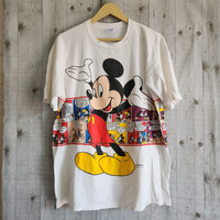 Very Rare Vintage Mickey Mouse Mirror Printed Single Stitches Velva Sheen Copyright Disney Color : White (Colour Maybe Slightly Different From Pictures Due To Lighting & Camera) Store Code : VT01 Made In : USA Tag : Velva Sheen USA Size On Tag : XL Adult Condition : Used, 2 Pinholes Manual Size : Armpit To Armpit 22.5 inch, Length 28 inch DO PLEASE READ CAREFULLY AND UNDERSTAND WHAT ARE YOU BUY! ALL SALES ARE FINAL NO RETURN, NO CANCEL, NO FUSSY BUYER POSTAGE BY DHL EXPRESS WITHIN 5 - 7 WORKING DAYS WORLDWIDE