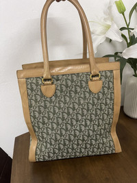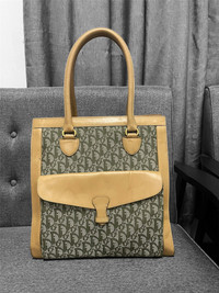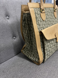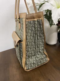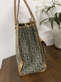 Authentic Dior Green monogram Brown leather Having sign of use on leather Some rugged on base monogram but not affected Bag only Shipping worldwide All sale are final Size Width:33cm Height:33cm Depth:16.5cm