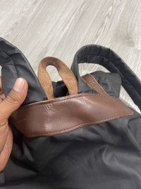 Size about large Adjustable strap hole on each buckle Waterproof tech nylon on body Leather on bottom and strap Overall condition good Have sign of wear near the strap(nylon peel a little bit not affected of wearing) Shipping worldwide All sale are final