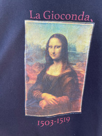 Nice shirt Superb printed historical mona lisa photo Size on tag 4L Tag read time flies Refer manual for best fit Good condition Shipping worldwide All sale are final
