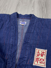 EDIWN KYOTO Limited Edition "Denim Hanten" This is Kyoto store exclusive products with motif of Hanten, the work clothes of common people in Edo period. The wide sleeve width, half-length sleeves and all these details are inspired by Hanten, while contoured line from front fly through the collar along the body.Namely, Japanese essence. The fabric from EDWIN original organic cotton denim with red stitching make the jacket more bolded and eye’s catching This jacket only sold on finest store only Medium size Please refer manual for best fit I have two pair of this jacket with same size Please check my listing for more detailed. I do shipping wordlwide All sale are final