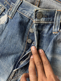 Size on tag 32x34 Manually on photo in inches Used comes with distressed (photo) Shipping worldwide