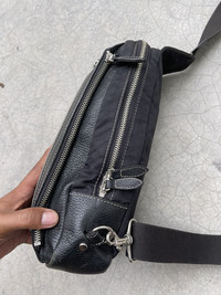 Size on photo in inches Can be crossbody on left or right Leather and nylon Multi compartment Overall condition Good Shipping worldwide All sale are final