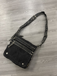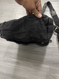 Size on photo in inches Good used conditon Cotton canvas with some leather Adjustable strap length Shipping worldwide All sale are final