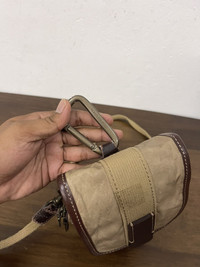 Size on photo in inches All leather body Have sign of wear on dark brown leather Shipping worldwide All sale are final