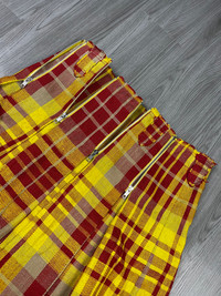 Japanese Brand - Vetement DHL colorway Plaid Pleated Multi Zipper Skirt