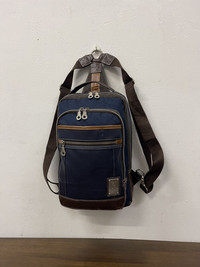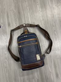 Size about medium Manual on photo in inches Good used condition Can be crossbody or bagpack Remove able strap Adjustable strap length Shipping worldwide PU leather and cotton Shipping worldwide All sale are final