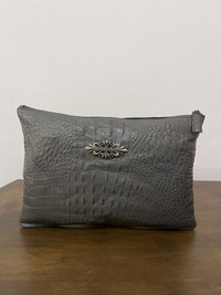 Leather - Croc Embossed Clutch Bag with cross