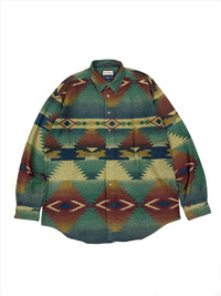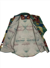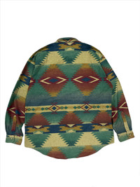 Super nice flannel shirt with navajo design 100% cotton Large size on tag.Refer manual for best fit Made in USA Very good condition Button fastening I do shipping worldwide